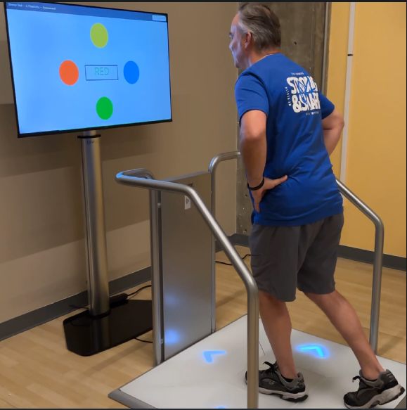 The Senso Smart Platform provides individually-tailored exercise programs by interacting with the pressure-sensitive device through weight shifts, multidirectional steps and jumps.